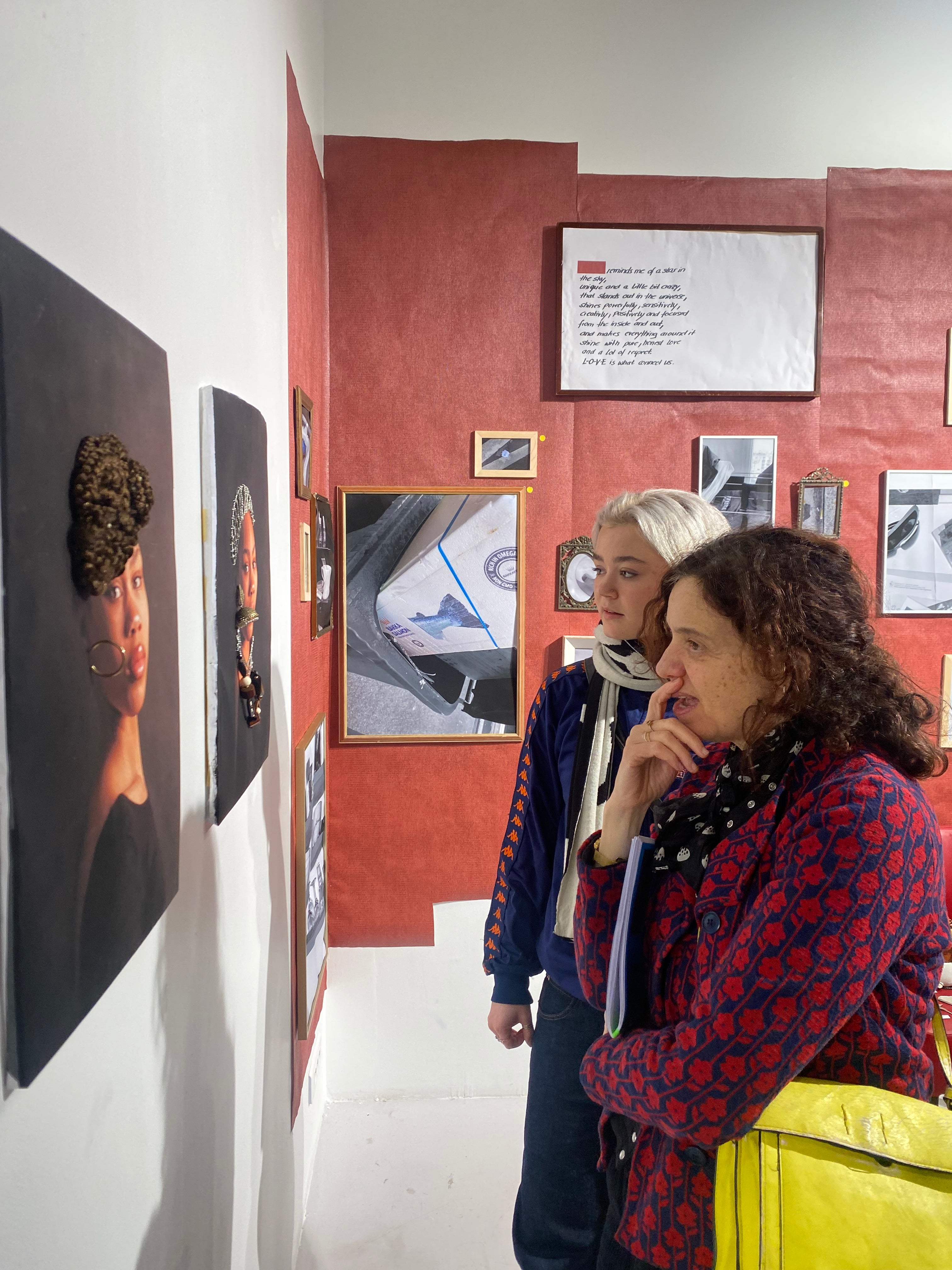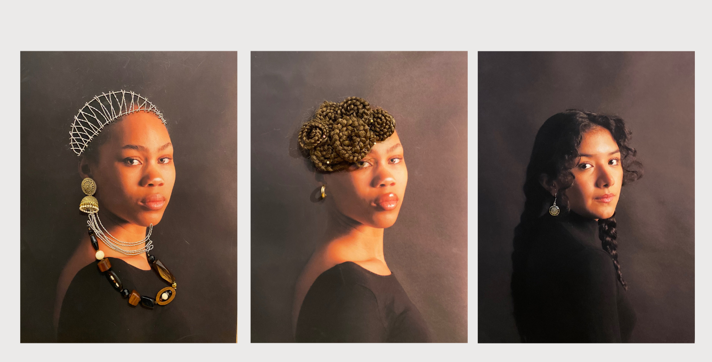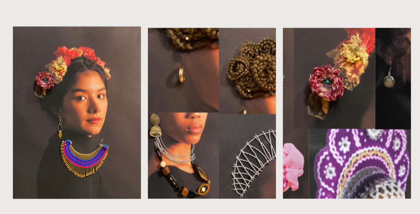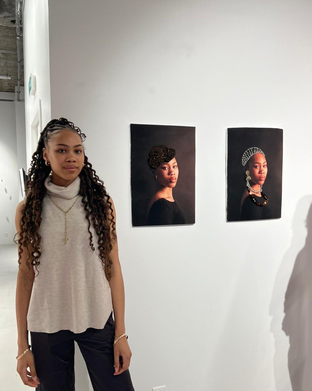 The “Routes to Roots Series,” by Summer Swanson, 2023 (4/6 series, mixed media, photograph, wire, beads, synthetic hair, jewels, and foam board) exhibited at Galerie D. in France, is a project that reinterprets Vermeer's "The Girl With The Pearl Earring" to offer a fresh perspective, shifting away from the traditional male gaze to cater to the female perspective. It aims to empower women by allowing them to define their own narratives and perceptions, particularly focusing on cultural identity and empowerment. Through the portrayal of two portraits, one showcasing traditional aspects of Mexican culture such as braids and pre-Columbian-inspired jewelry, and another merging Nigerian and American cultures, symbolized by traditional Nigerian headpieces and elements representing the "Black is Beautiful" movement in African American culture, the project seeks to amplify a sense of freedom and identity. It utilizes cultural symbols to represent power, pride, and resistance against historical injustices, aiming to redefine standards of beauty and reclaim cultural heritage. The artworks emphasize the significance of cultural connections and individual agency in shaping identities.