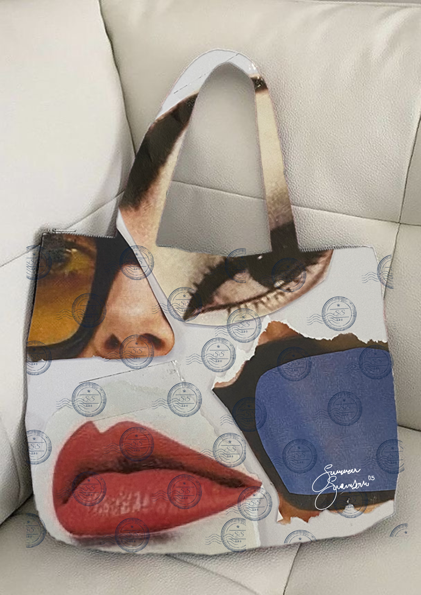 “Lady in Red,”(2023) by Summer Swanson magazine and newspaper clippings on paper.