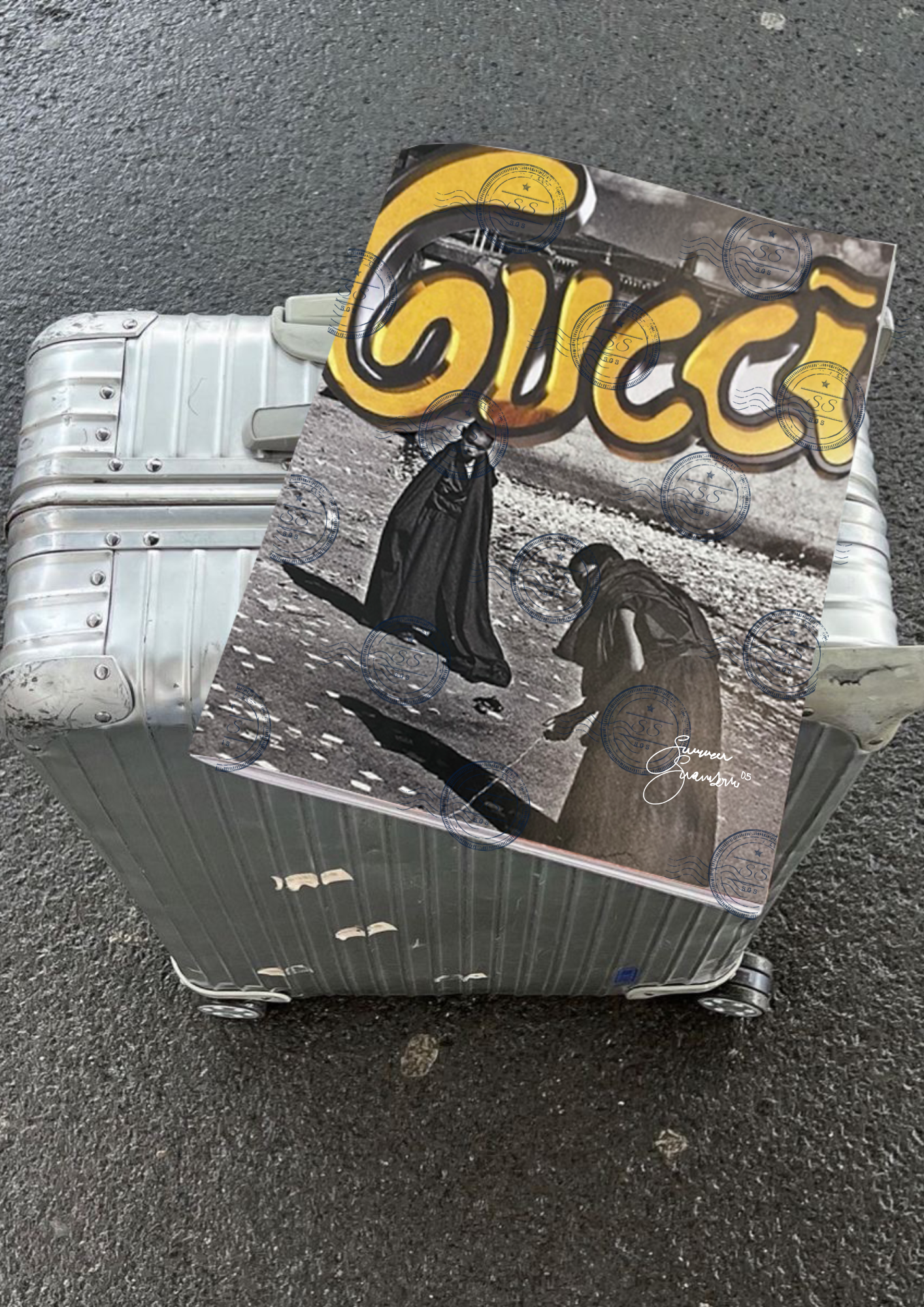 “Monks in designer ,”(2023) by Summer Swanson magazine and newspaper clippings on paper.