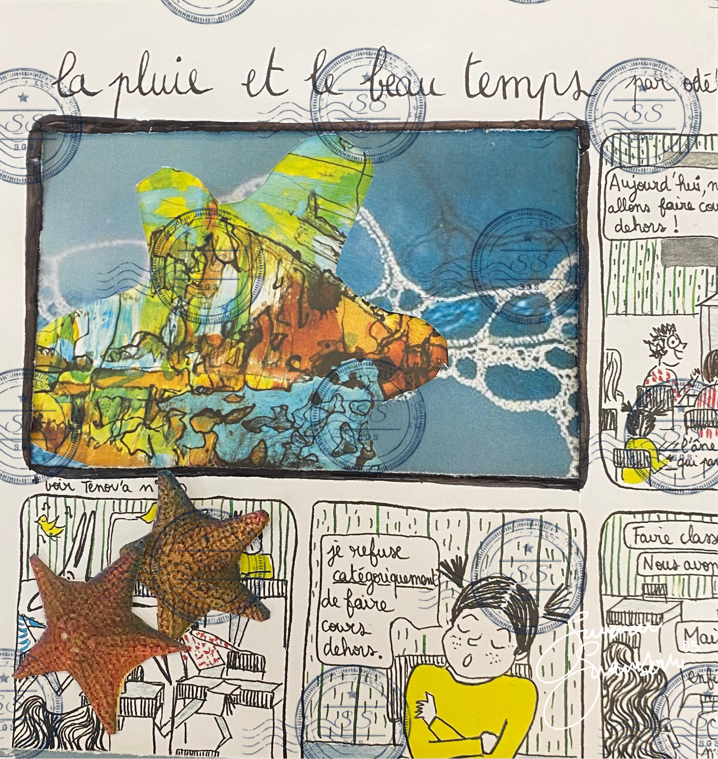 “Storyboard,”(2023) by Summer Swanson magazine and newspaper clippings on paper.